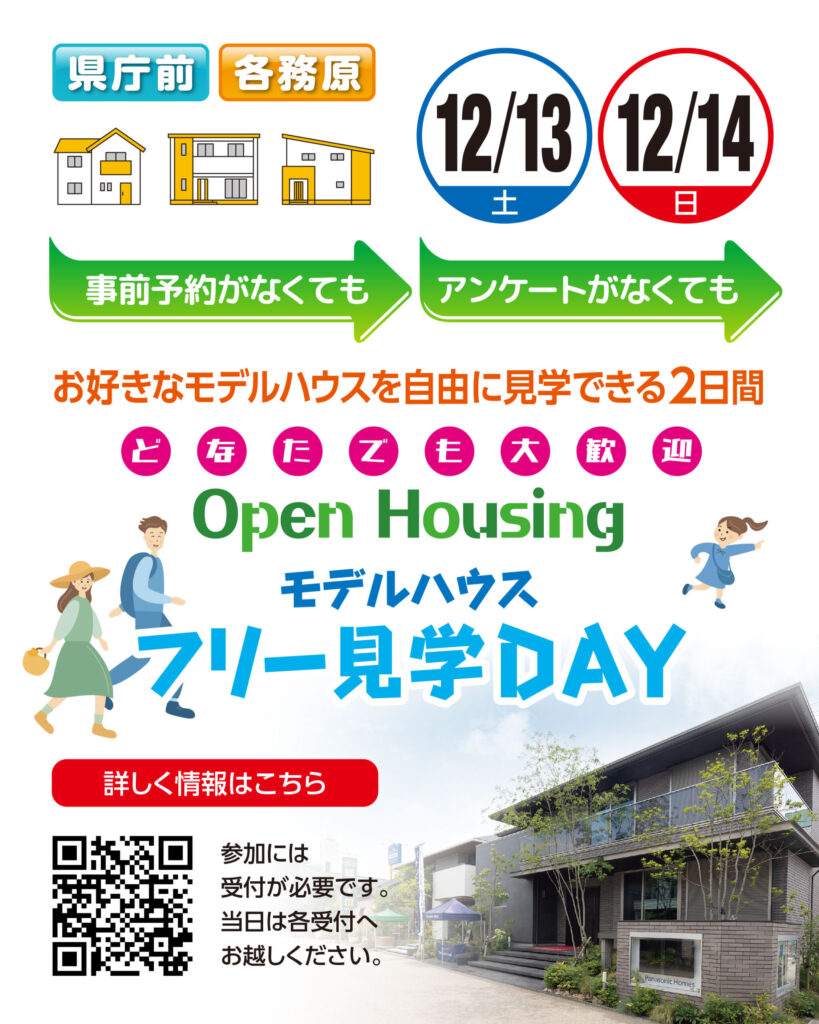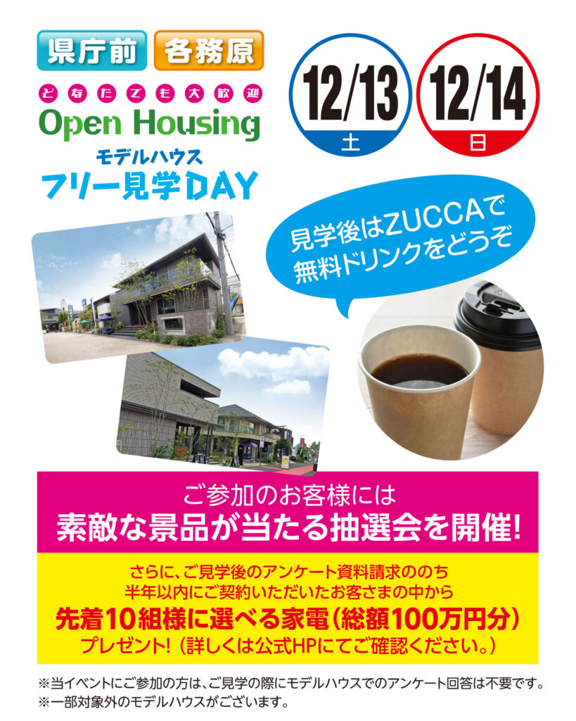 ●どなたでも大歓迎!モデルハウス「フリー見学会 オープンハウジング」を開催いたします
