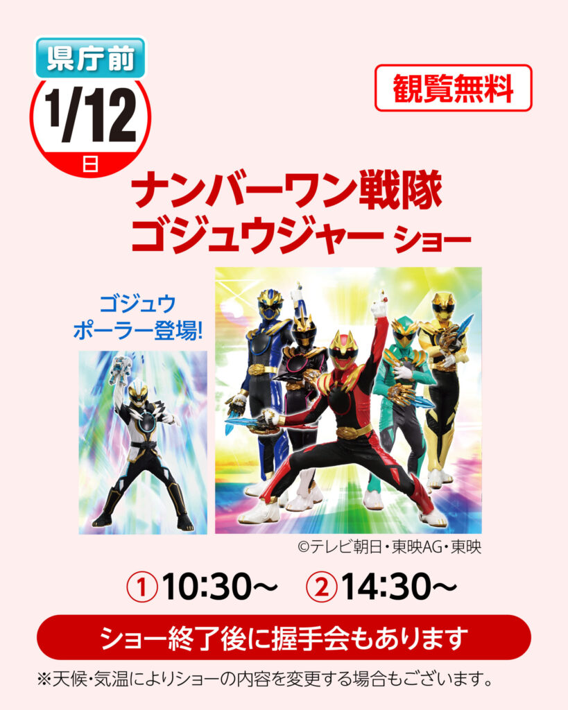 お子様に人気の「ナンバーワン戦隊ゴジュウジャー」ショーを開催いたします。