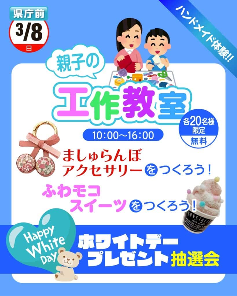 「ましゅらんぼ アクセサリー」「ふわモコスイーツ」をつくろう!です。