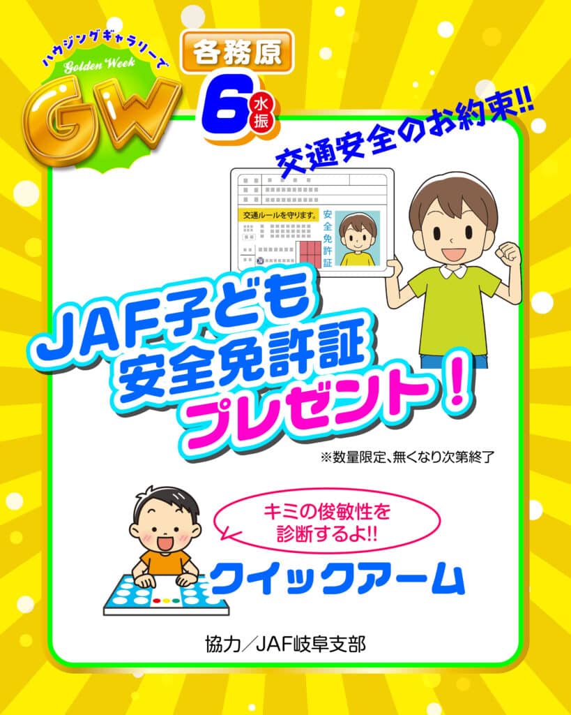 5月6日(水振)JAF子ども安全免許証 プレゼント!