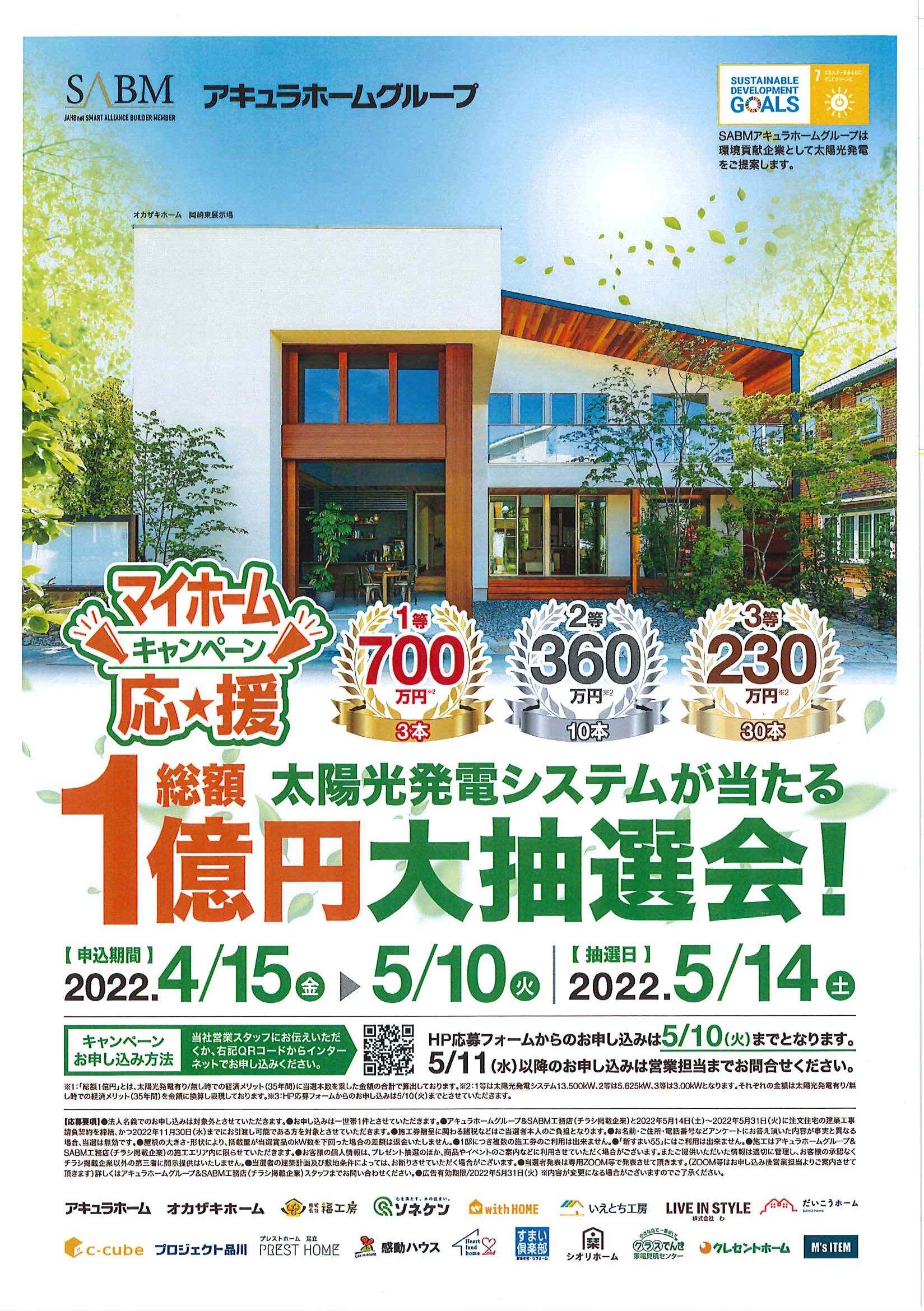 5月14日(土)マイホーム応援キャンペーン(太陽光抽選会)のご案内♪