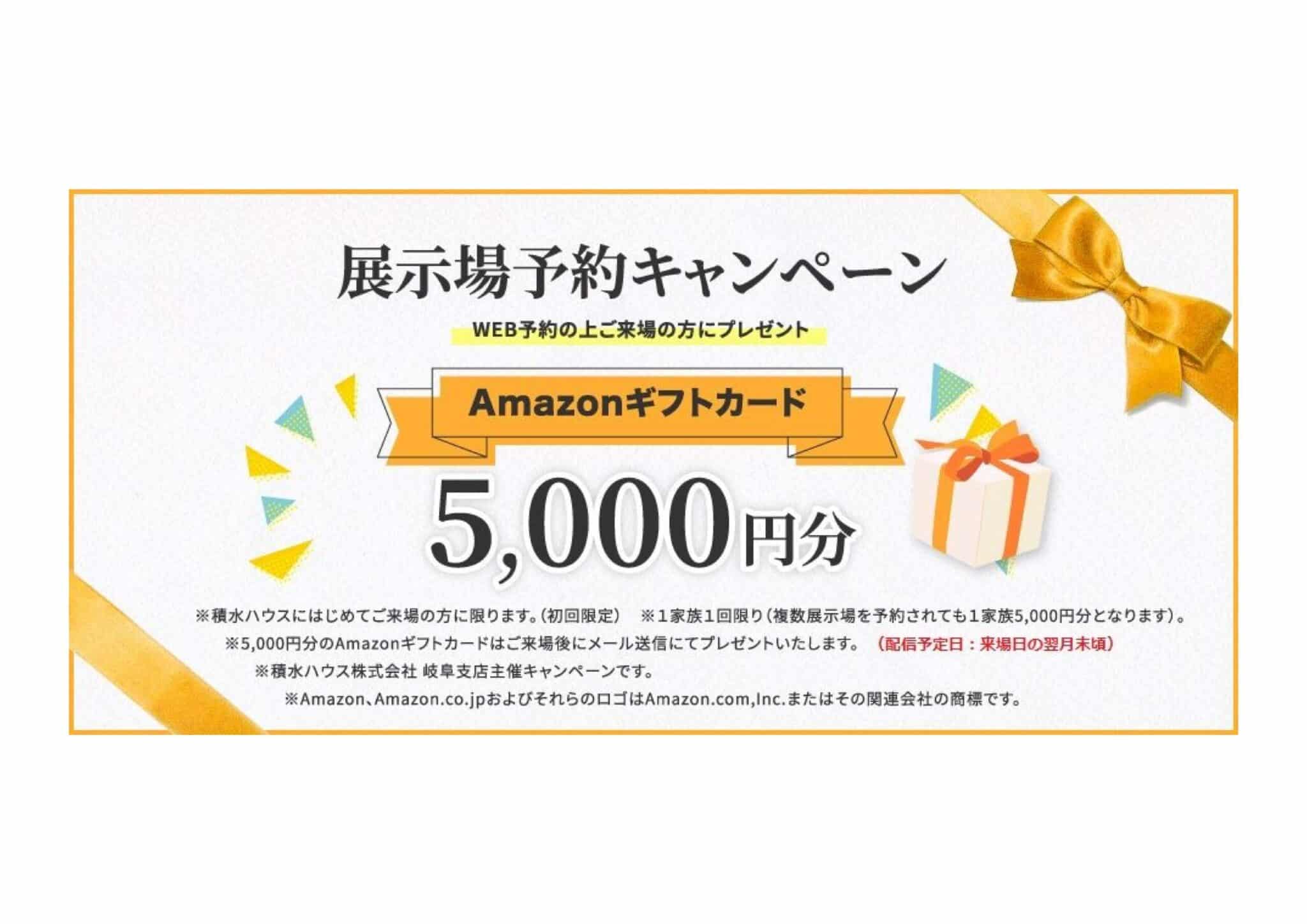 Web予約の上、積水ハウスが初めての方へAmazonギフトカード5,000円分&ノベルティをプレゼントいたします。